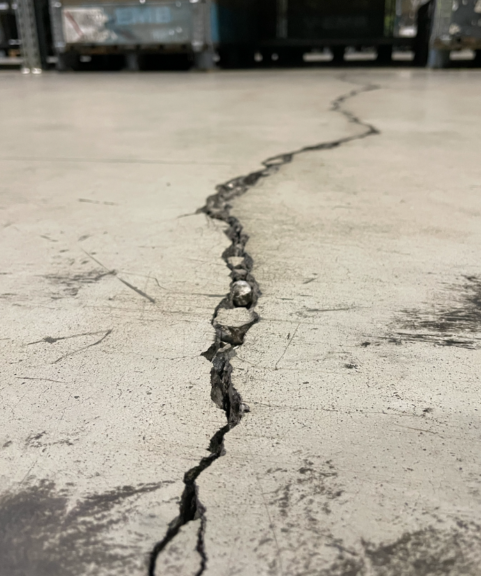Door zettingen van het gebouw kunnen scheuren ontstaan in de betonvloer.