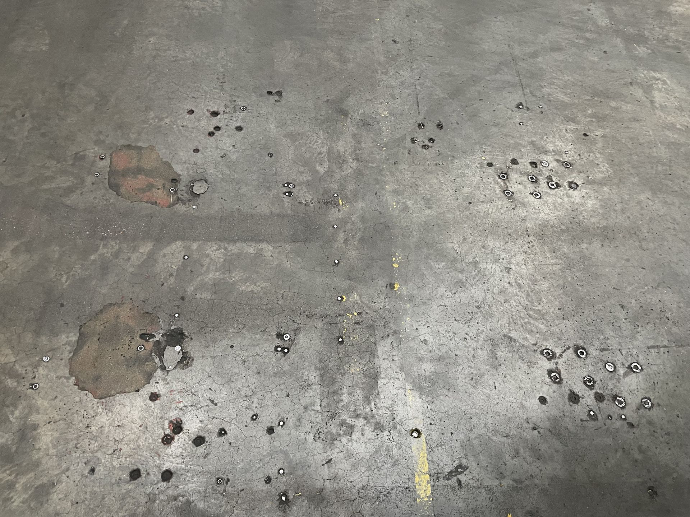 Bevestigingen van bv. machines laten schade na in de betonvloer.